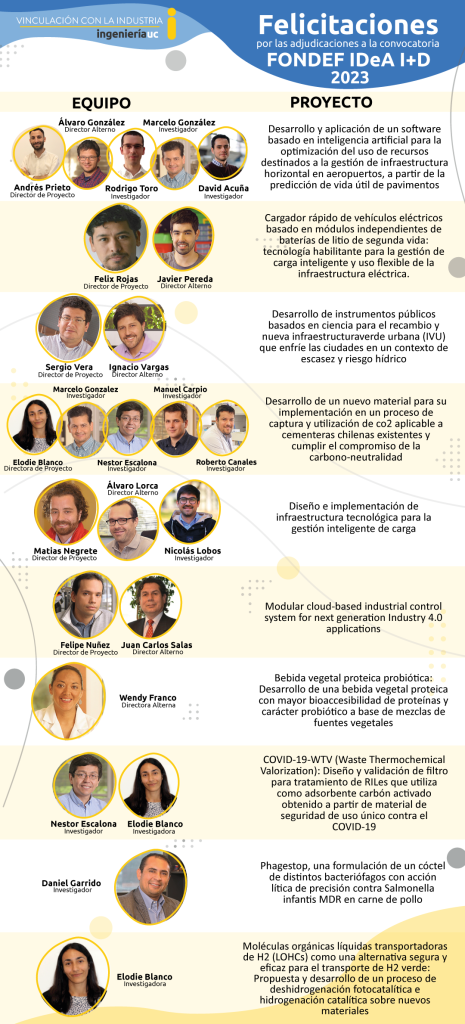 ACADÉMICOS DE LA ESCUELA DE INGENIERÍA UC DESTACARON EN 10 PROYECTOS SELECCIONADOS DE FONDEF IDeA I+D 2023.